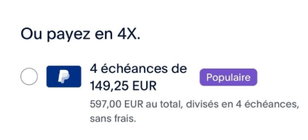 PAIEMENT EN 4X DISPONIBLE AVEC PAYPAL